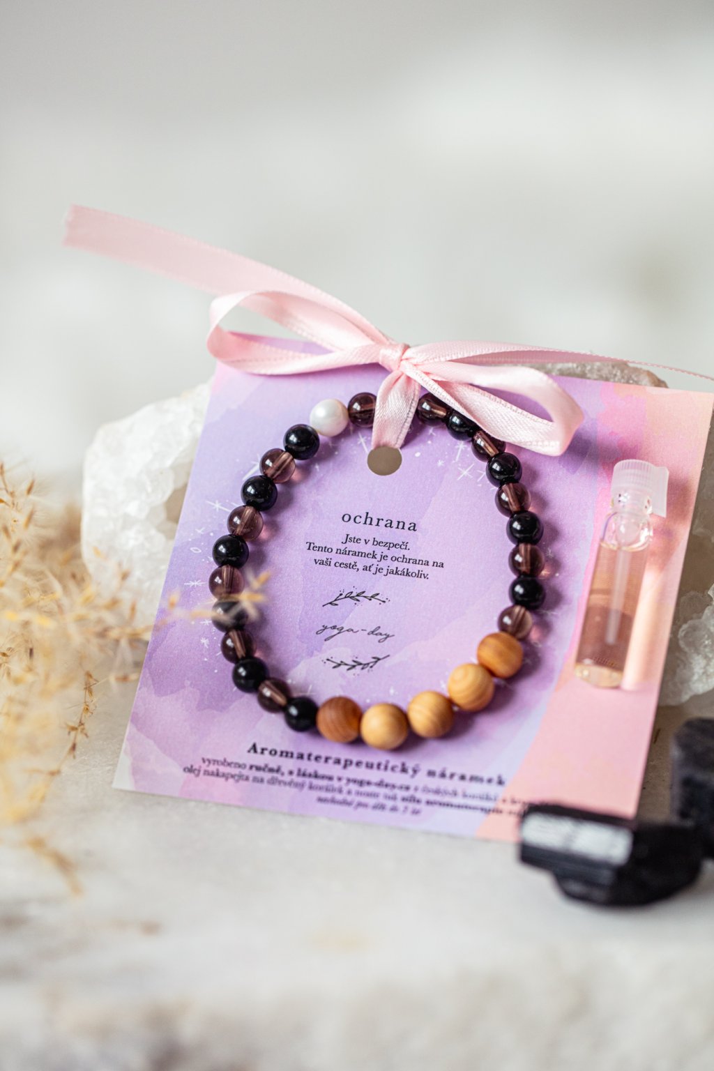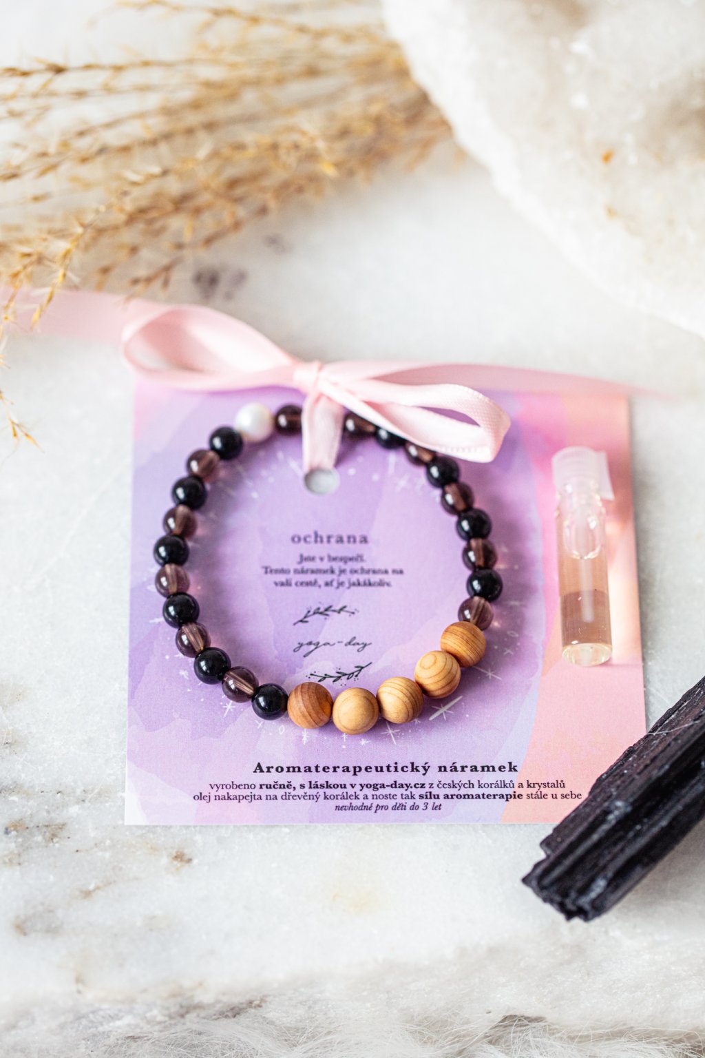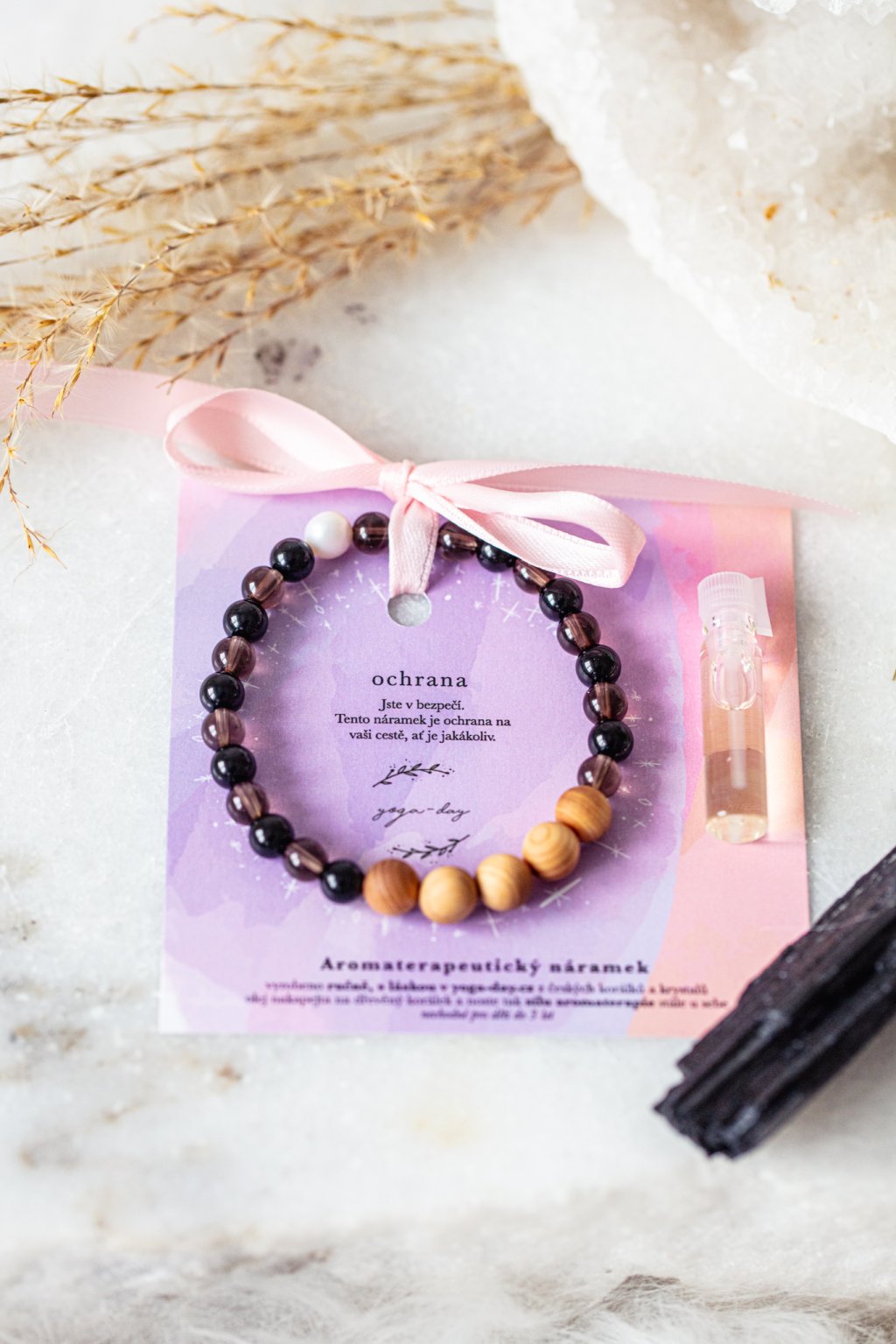 Tento aromaterapeutický náramek Ochrana je s láskou ručně vyrobený v yoga-day z českých dřevěných korálků a pečlivě vybraných krystalů. Přináší pocit bezpečí, uzemnění a vyvážené energie. Je krásným dárkem pro každého, kdo chce posílit svoji vnitřní sílu a chránit svůj prostor, fyzický i energetický.