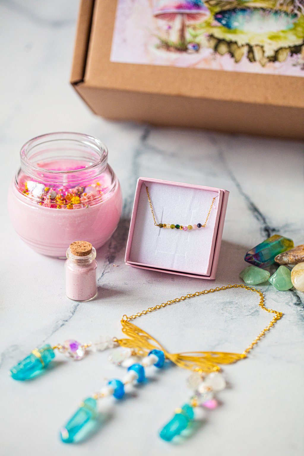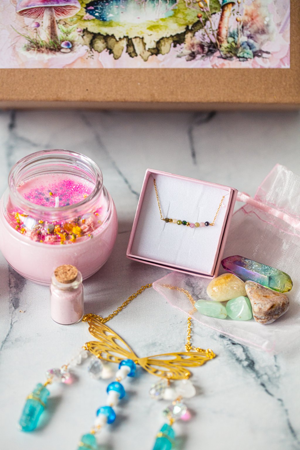 Představujeme vám něco opravdu výjimečného: VÍLÍ MYSTERY BOX – tajemný balíček plný něžné krásy, který potěší každou ženu s duší bohyně či víly.