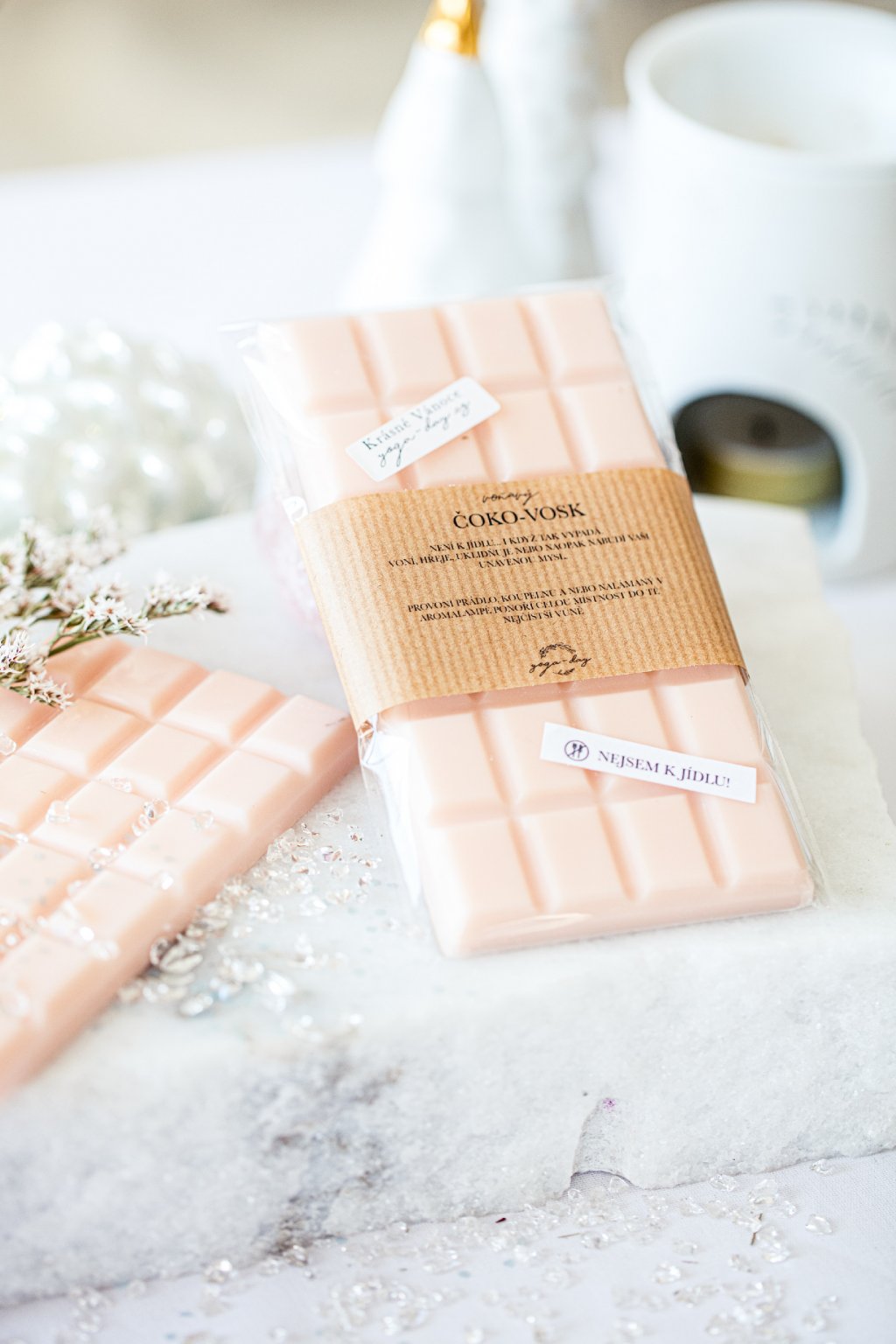 !!! POZOR !!! ČOKO-VOSK není k jídlu, i když je vyroben z přírodního sójového vosku a čistých esenciálních olejů, posypaný biologicky rozložitelnými třpytkami a obarvený přírodními barvivy.