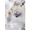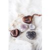 Geoda uvnitř otevírá vnitřek kamene samotného. Symbolizuje propojení světa, života a vašeho vnitřního já. To jak vaše vnitřní nastavení může ovlivnit vnější život, svět i celý vesmír. Na polici vám bude stále připomínat, jak důležité je pro vás vnitřní nastavení a přístup k životu.Achát do našeho života dodává rovnováhu. Dokáže uvádět do souladu prvky jin a jang. Tzn. že umí dát do souladu pozitivní a negativní síly, které udržují celý vesmír pohromadě. Podporuje sebedůvěru, posiluje soustředění a správná rozhodnutí, dodává odvahu a upřímnost k sama sobě. Pomáhá překonávat negativní pocity, zlobu, odstraňuje vnitřní napětí. Achát Vám dodá pocit jistoty a bezpečí.Ideální místa: meditační koutek, jógový koutek, ložnice a dětský pokoj