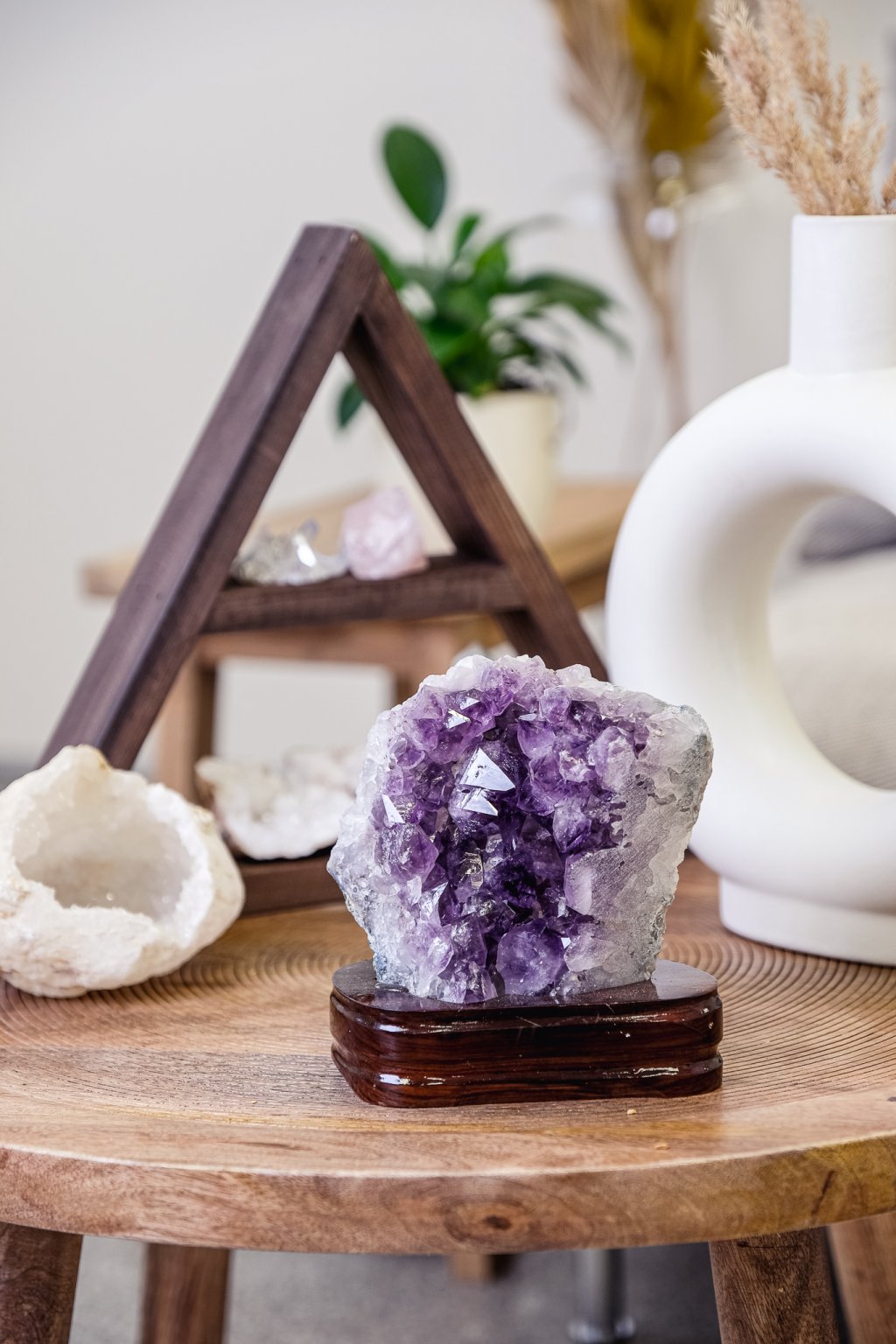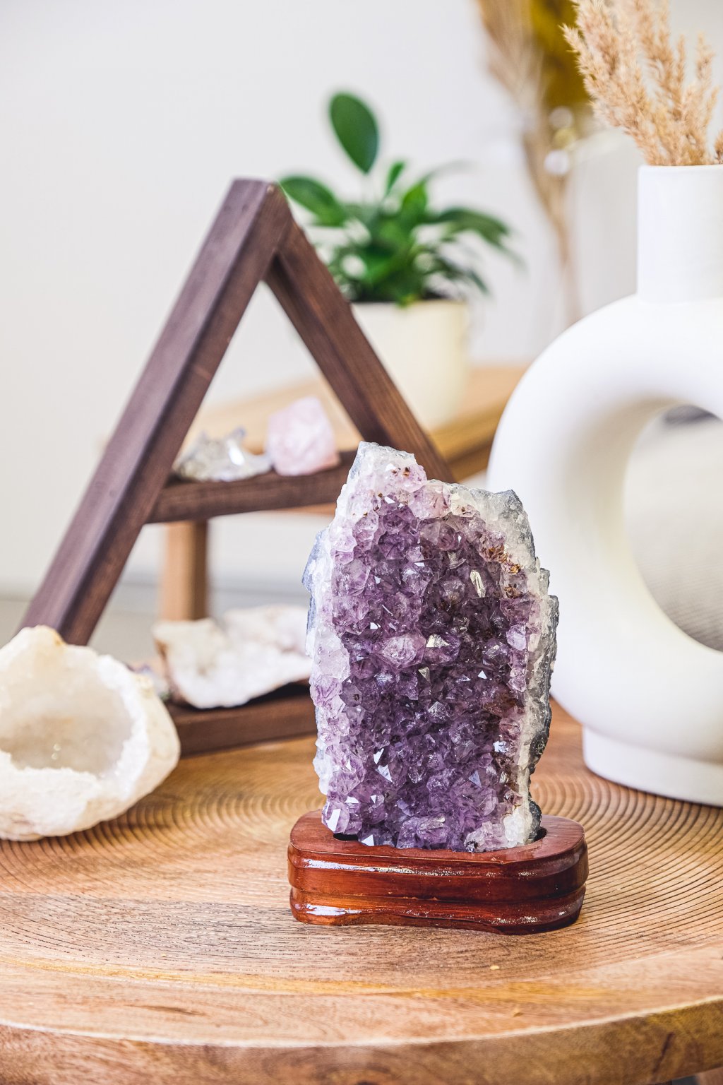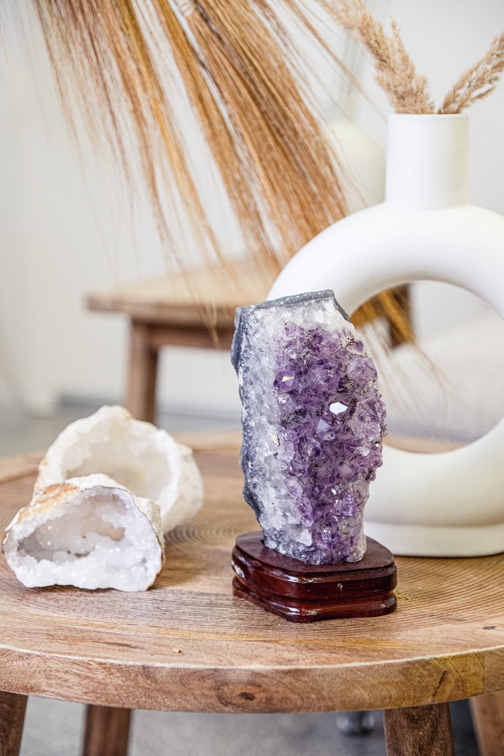 Nádherná drúza ametystu na podstavci je krásný doplněk do vašeho domova. Velká drúza naplní prostor klidem a harmonií.