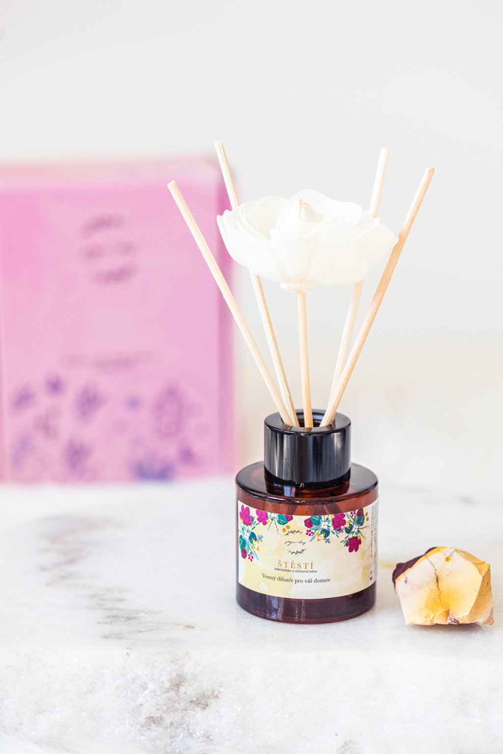 Součástí balení je nádherný květ, který nasaje vůni a zvyšuje intenzitu difuzéru