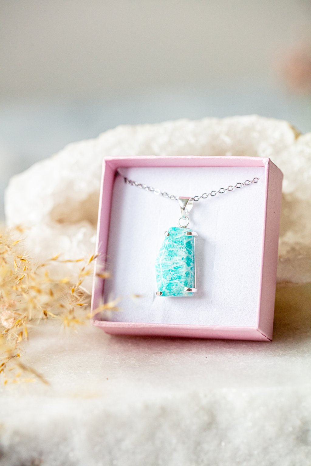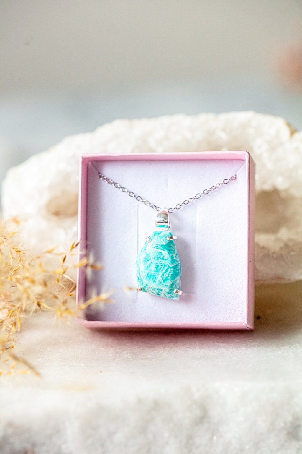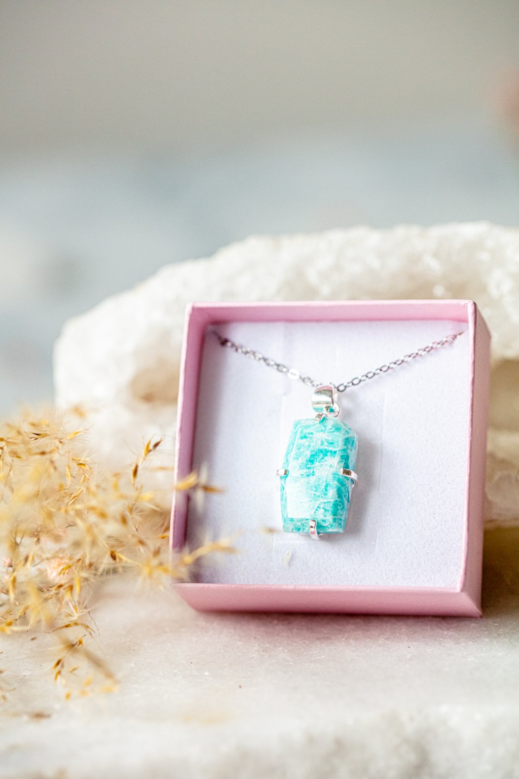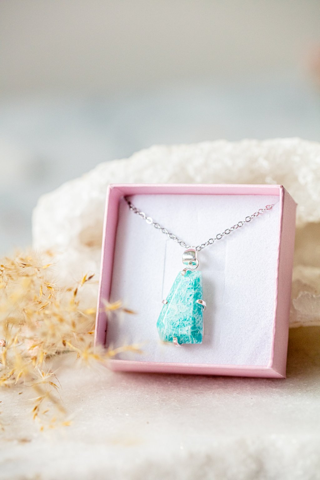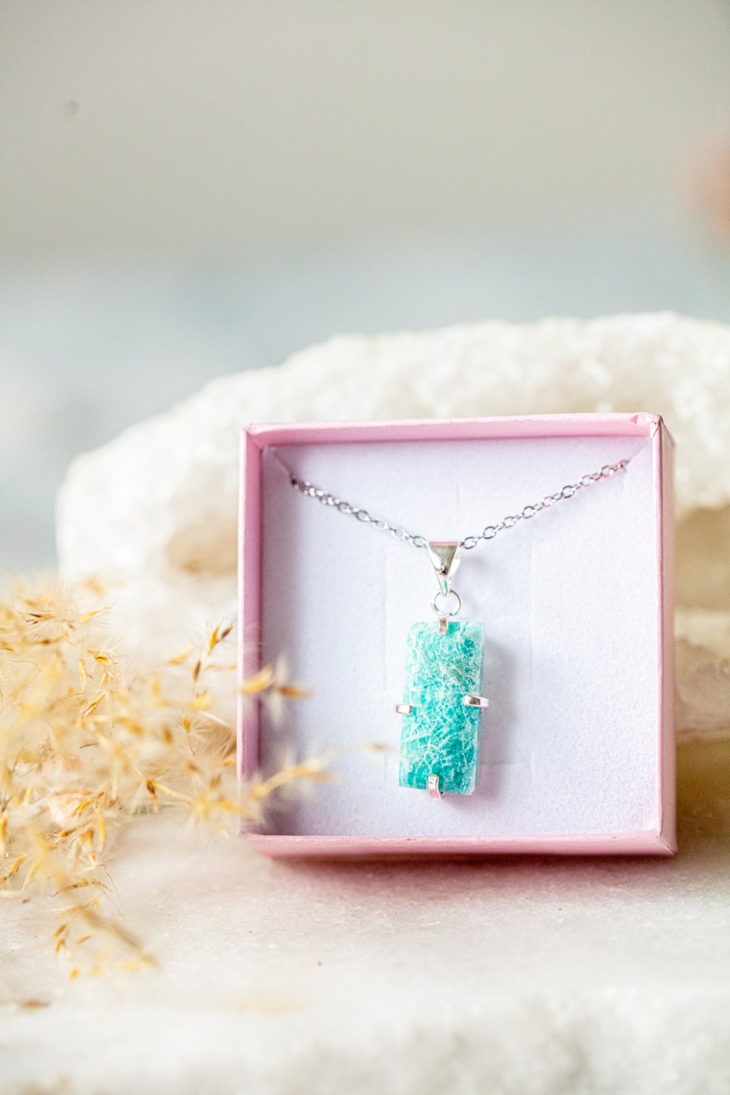 Amazonit je kamenem naděje, vnitřního klidu a odvahy. Říká se, že pomáhá nalézt rovnováhu mezi srdcem a rozumem a podporuje otevřenou a laskavou komunikaci. Jeho jemně zelenomodrá barva vnáší do života harmonii a pocit lehkosti.