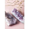 Nechte sebe i svůj domov okouzlit tímto nádherným kusem ametystu pokrytým takzvanou andělskou aurou. Je to technika, kdy se na kámen nanáší tenká vrstva titanu a ten se tak stává magicky duhový. Připomíná auru, zářící a obklopující naše tělo.