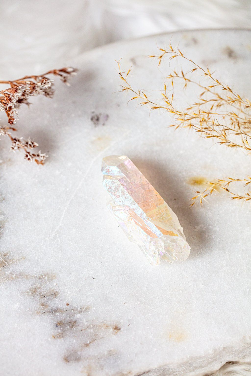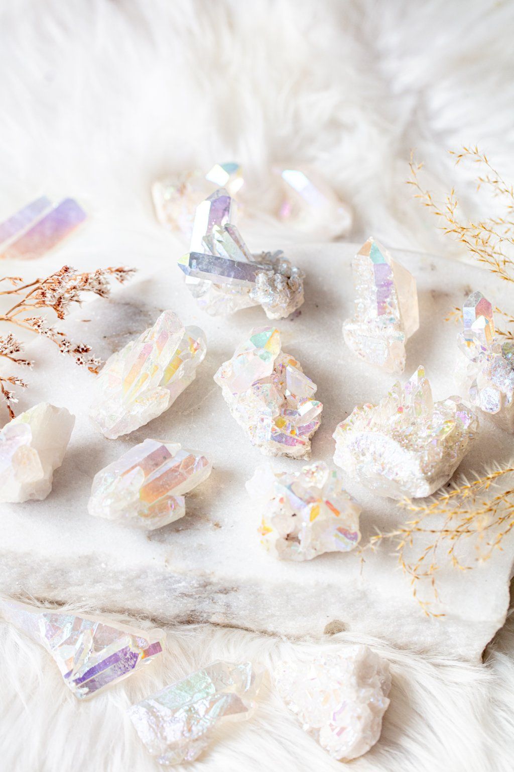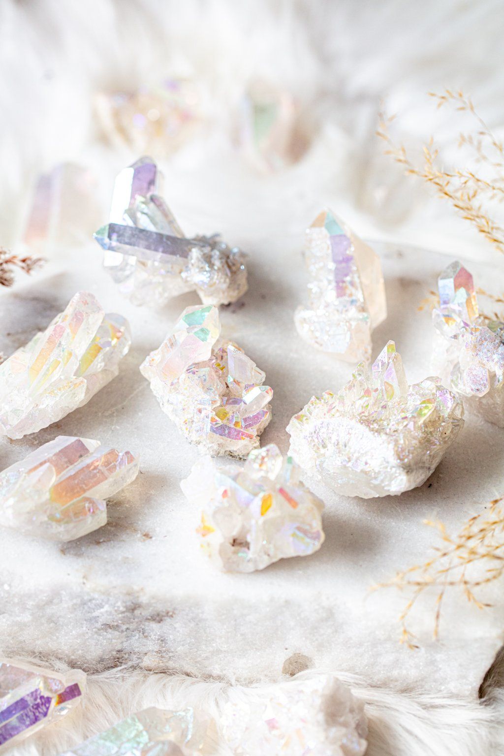 Nechte sebe i svůj domov okouzlit tímto nádherným kusem křišťálu pokrytým takzvanou andělskou aurou. Je to technika, kdy se na kámen nanáší tenká vrstva titanu a ten se tak stává magicky duhový. Připomíná auru, zářící a obklopující naše tělo.