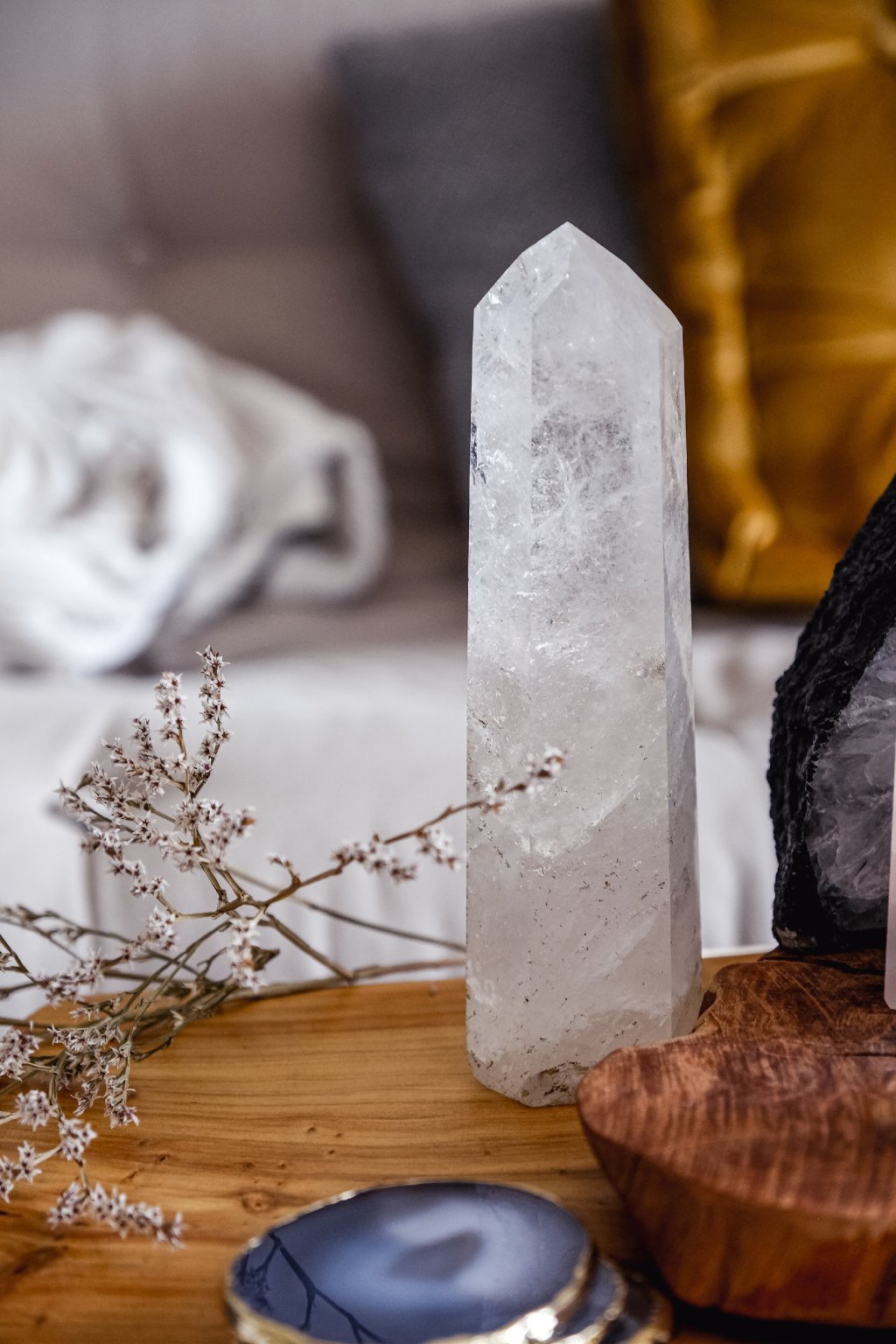 Křišťál je nejúčinnější krystal a nejsilnější zesilovač energie. Protože křišťál dokáže pracovat i s energií tak, že ji dokáže dostat do nejdokonalejšího možného stavu a odstranit vzniklou nerovnováhu, hodí se spolu s ametystem také pro meditační účely. Naladí vás k duchovnímu účelu a dokáže odfiltrovat všechny negativní vlivy. Pomáhá soustředění a uvolňuje paměť, o které jsme si mysleli, že je hluboko uzavřená. Používá se proto na zesílení svých vlastních myšlenek .