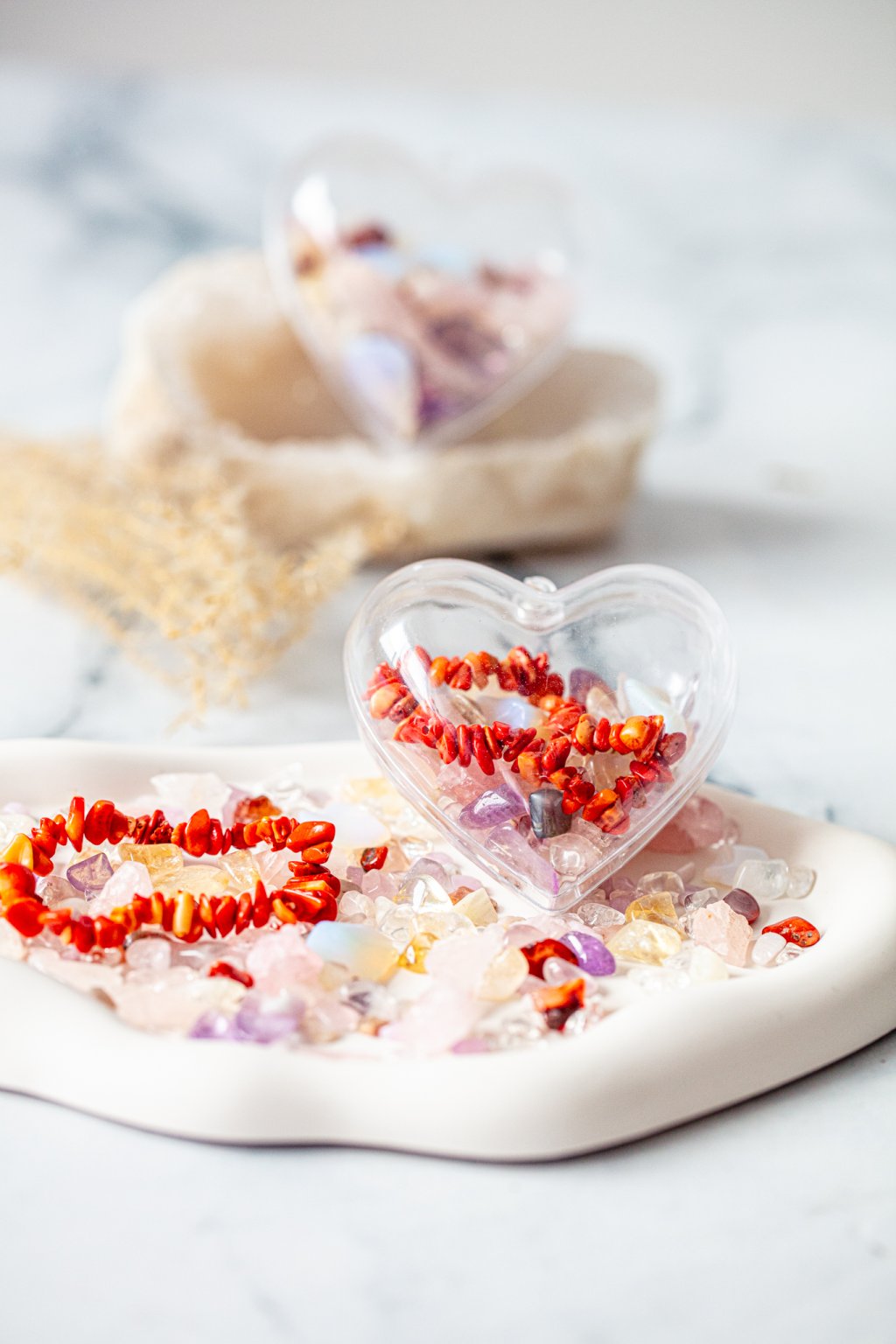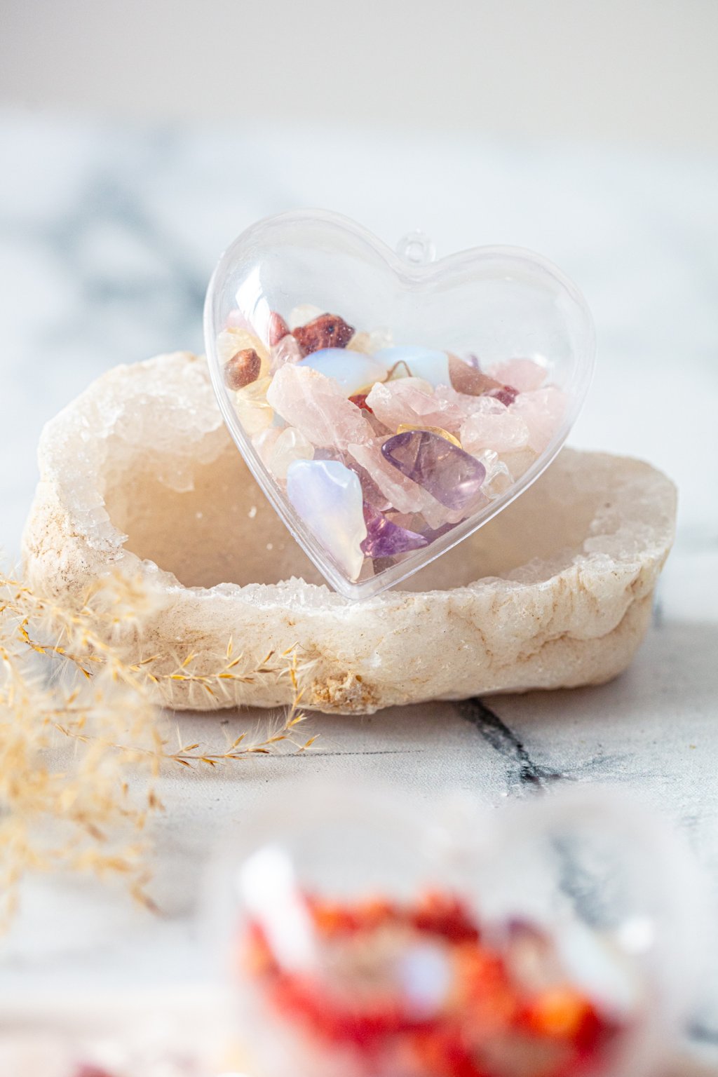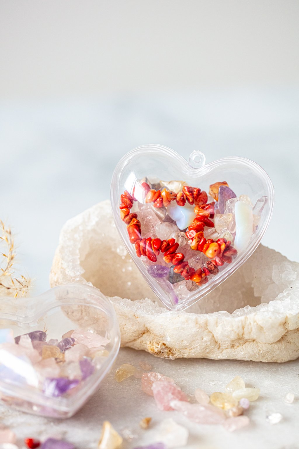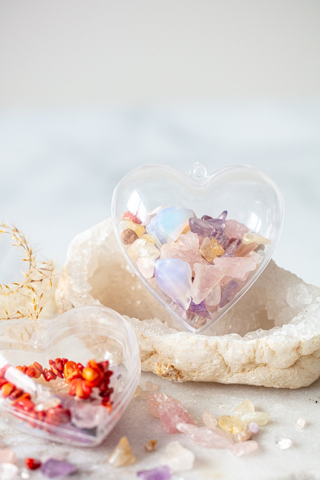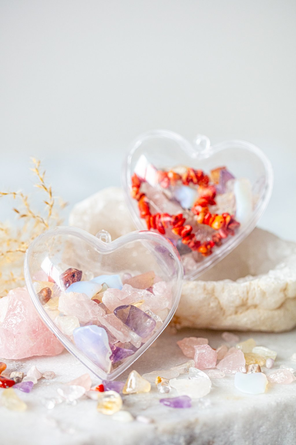 Každý kus je naplněn uplně originální kombinací krystalů, žádné srdce neni stejné a nese v sobě nese energii lásky, klidu a radosti, která se tiše šíří prostorem i mezi lidmi.