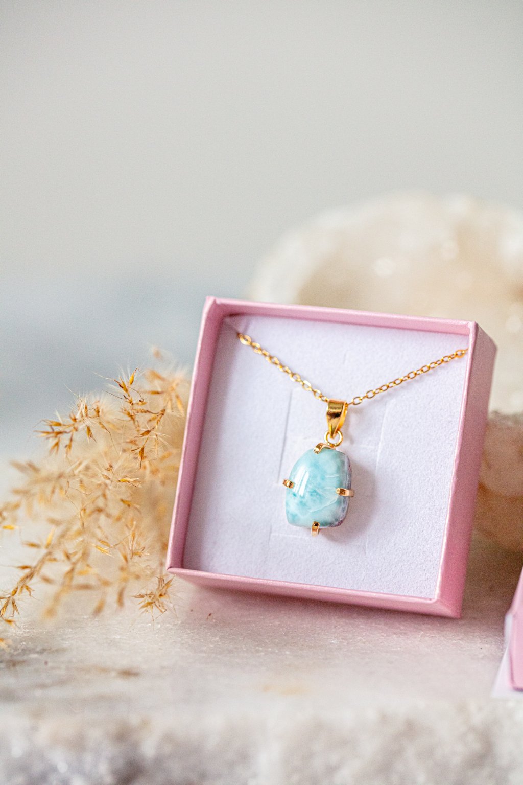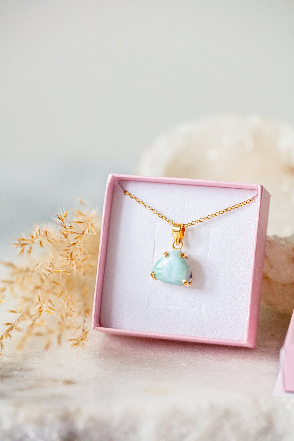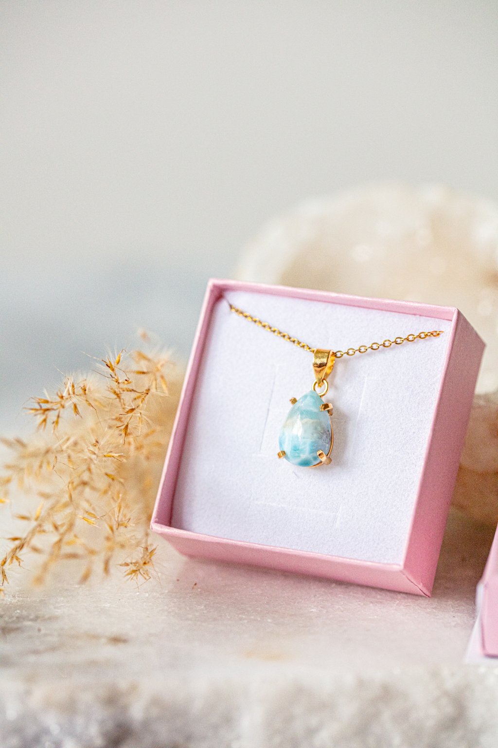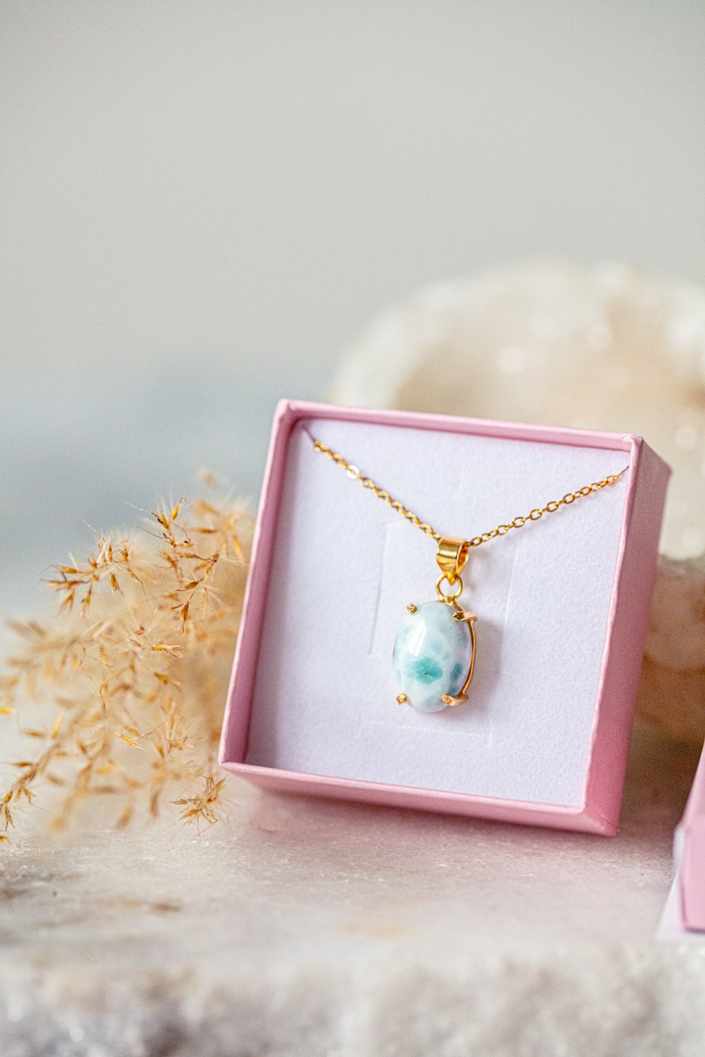 Larimar, nádherný a nadpozemský kámen, jeden z nejvzácnějších polodrahokamů, který byl objeven teprve nedávno (v roce 1970 na Dominikánských ostrovech). Je to kámen delfínů a vyšší moci. Ideální pro zbavení stresu a silných emocí. Rezonuje velmi silnou energií, podporuje kreativitu a tvůrčí schopnosti.