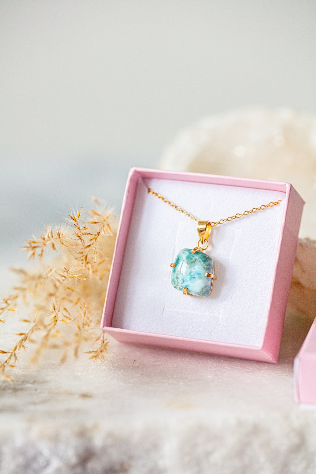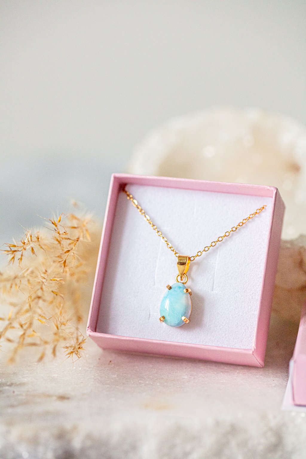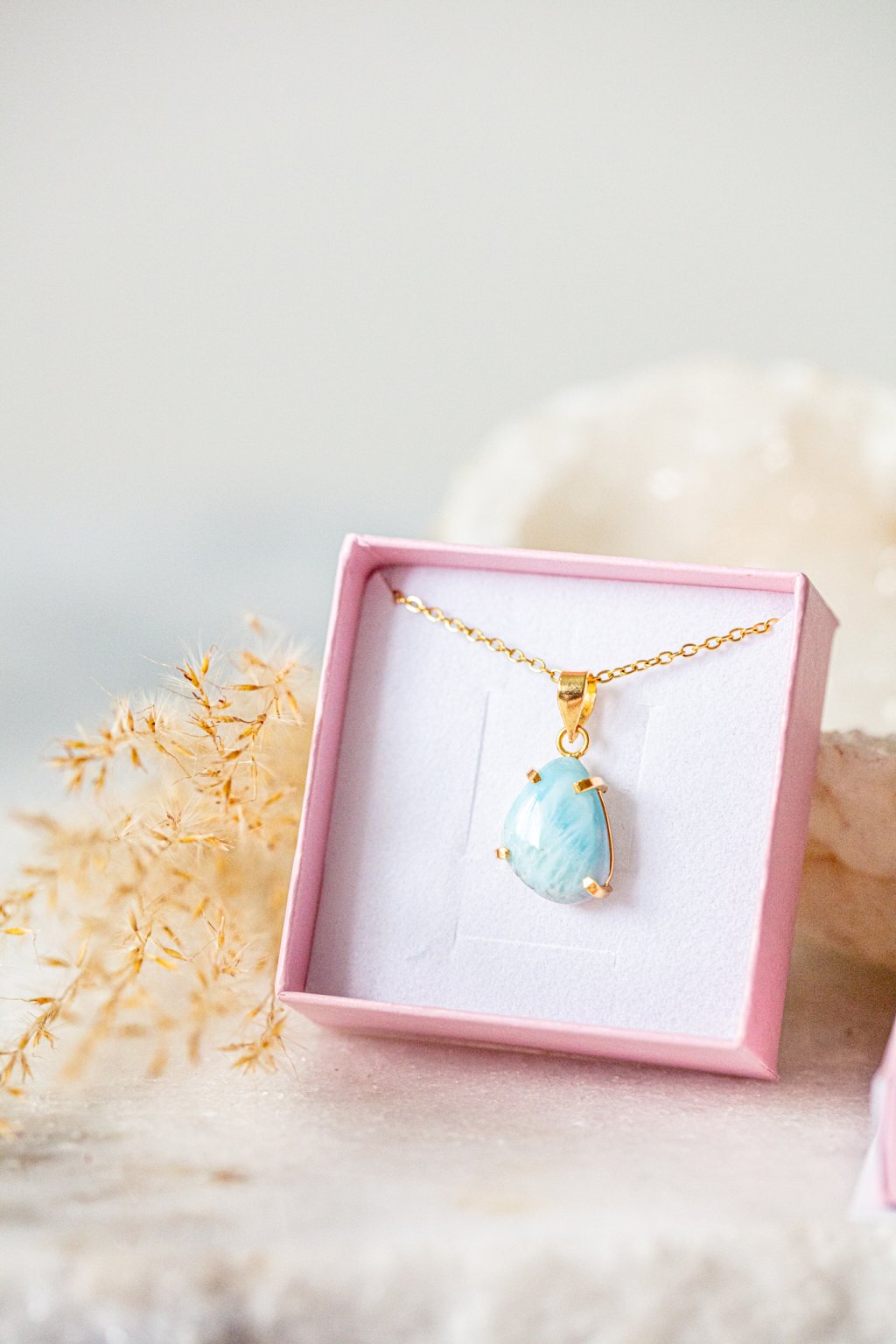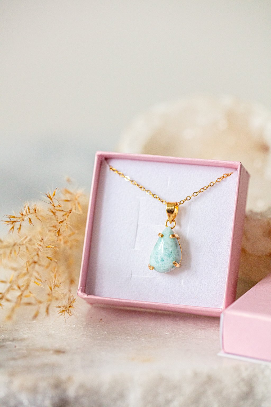 Larimar, nádherný a nadpozemský kámen, jeden z nejvzácnějších polodrahokamů, který byl objeven teprve nedávno (v roce 1970 na Dominikánských ostrovech). Je to kámen delfínů a vyšší moci. Ideální pro zbavení stresu a silných emocí. Rezonuje velmi silnou energií, podporuje kreativitu a tvůrčí schopnosti.