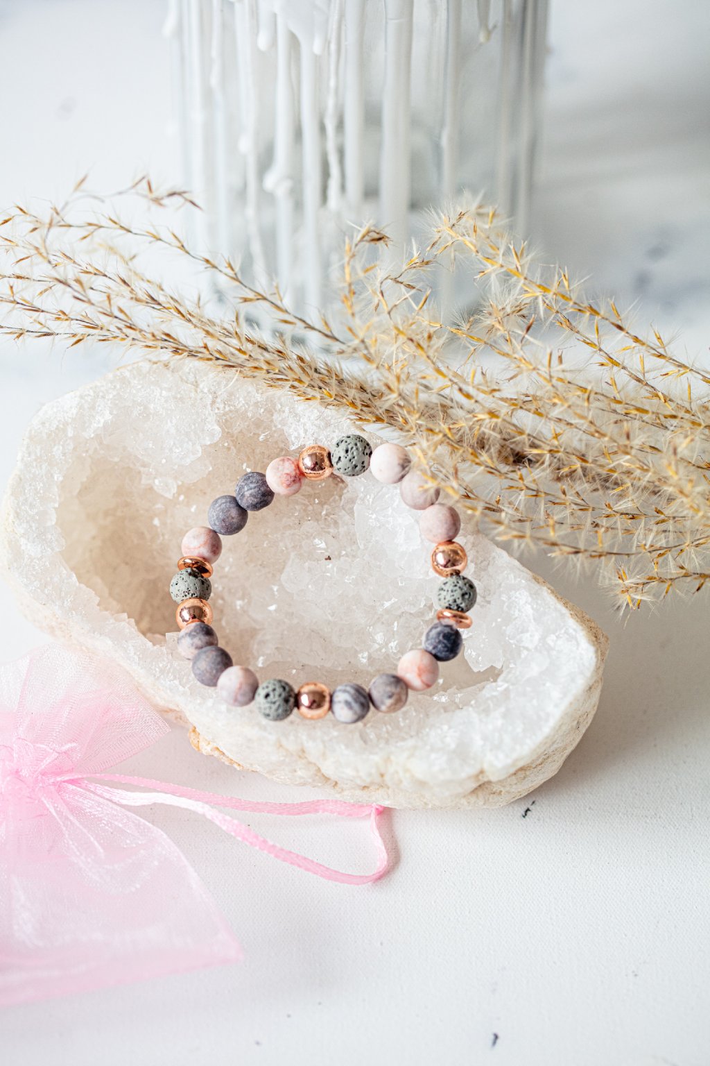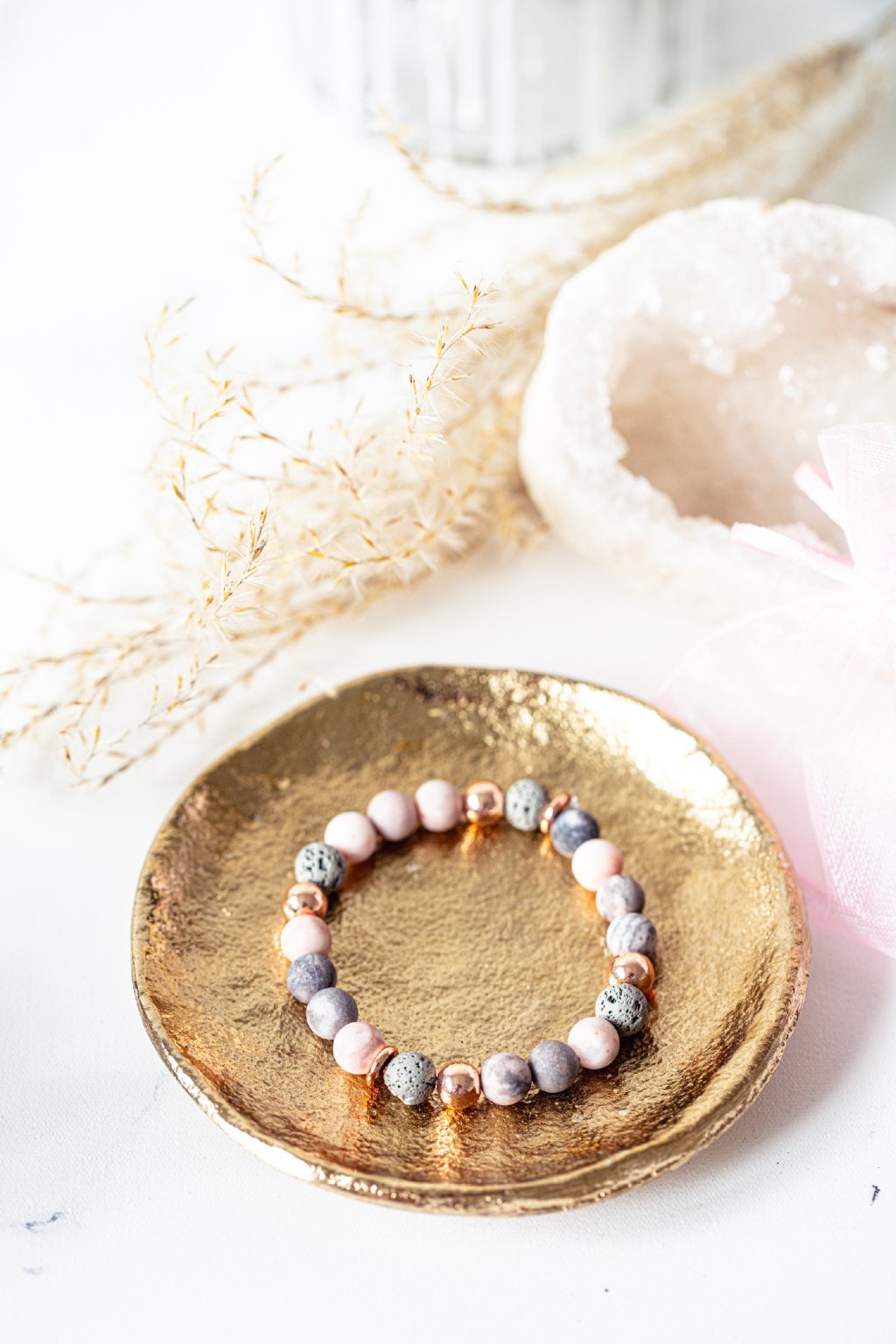 K náramku se skvěle hodí naše aromaterapeutické směsi nebo čisté esenciální oleje.
