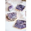 Žádali jste nás, abychom naši nabídku rozšířili o další krystaly, a protože chceme nabízet produkty, které mají širší využití, aby měla jejich koupě smysl, rozhodli jsme se pro nádherné podtácky. Každý tácek má zlatě obarvenou hranu. Rozzáří každý stůl. Může fungovat jako podložka pod šperky, jako podtácek pod kávu a nebo jako bezpečná podložka pod svíčku.