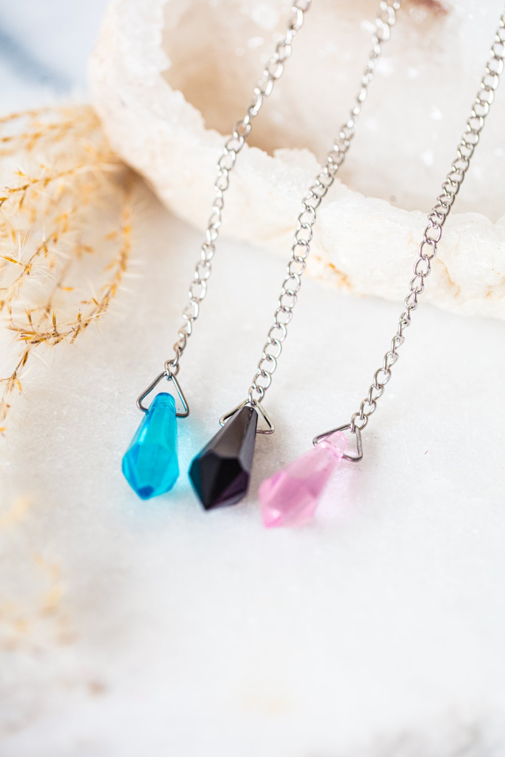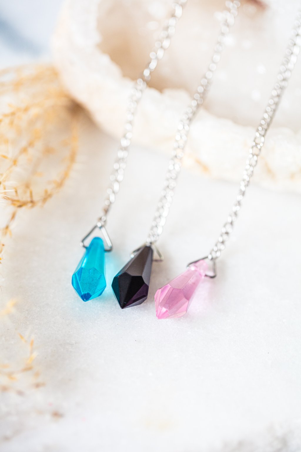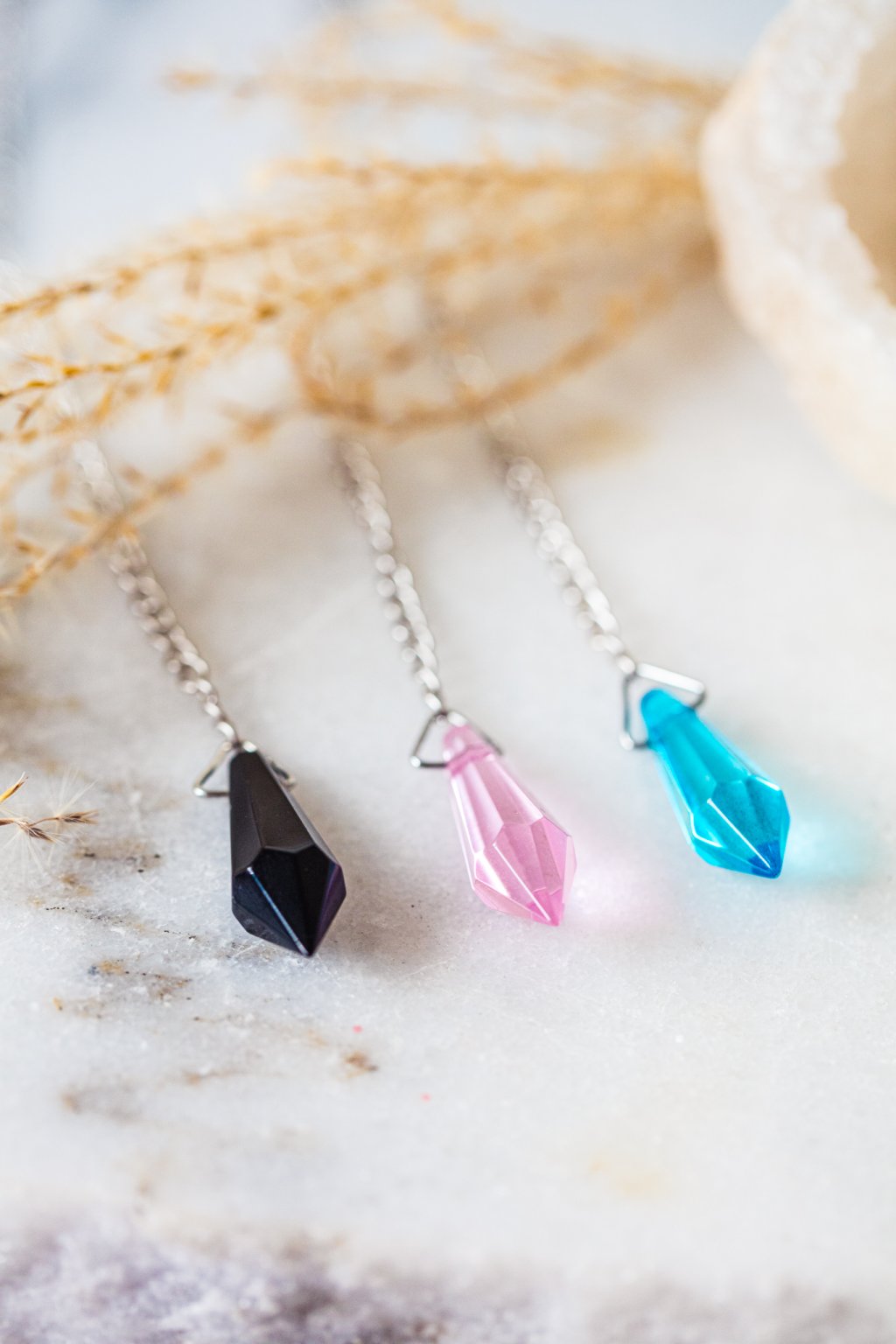 Kyvadlo z pryskyřice je lehké, elegantní a příjemně vyvážené pomůcka vhodná pro práci s intuicí, energetické ladění, meditační praxi nebo osobní sebepoznání. Vložené barevné prvky uvnitř pryskyřice dávají každému kyvadlu jedinečný vzhled i charakter.