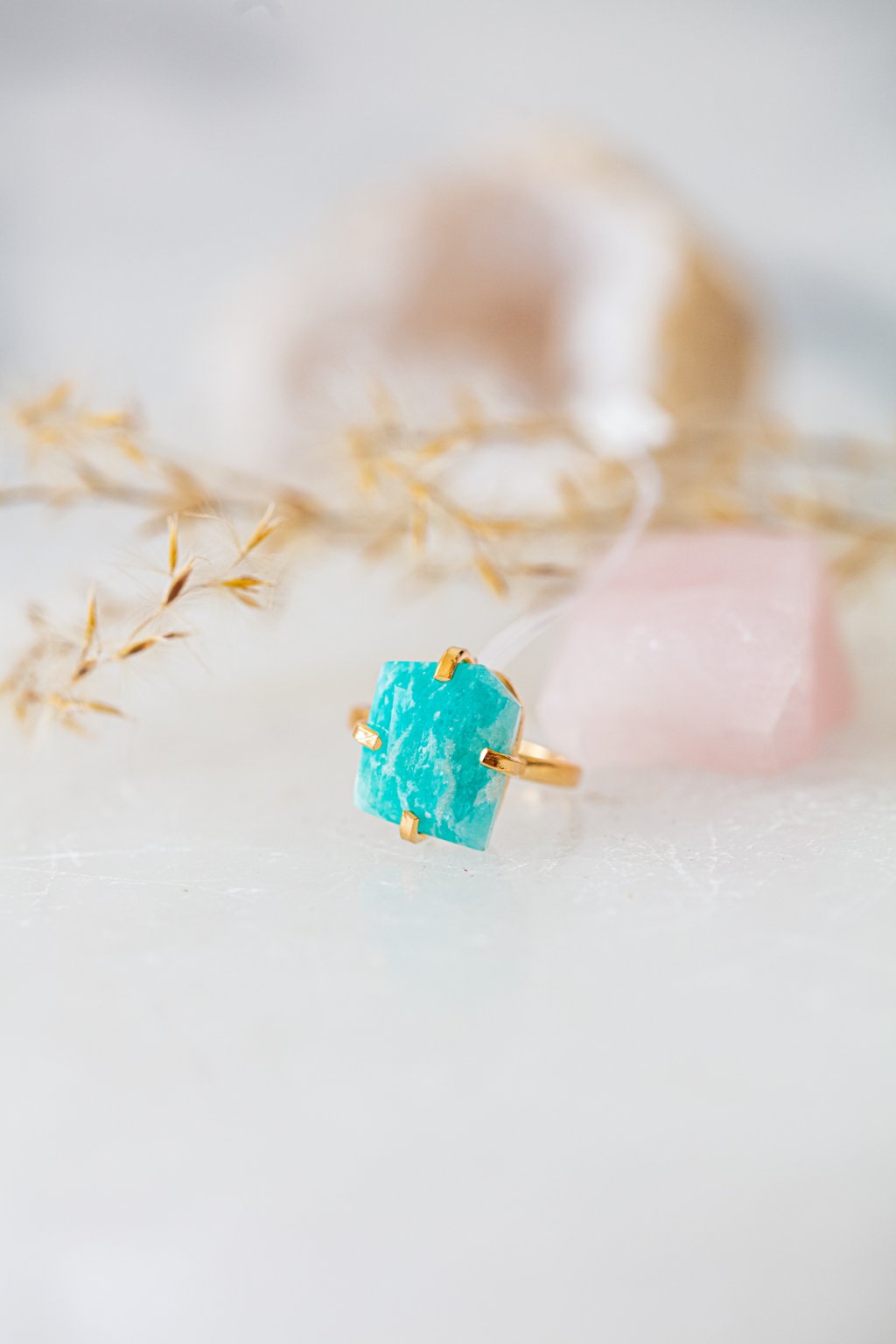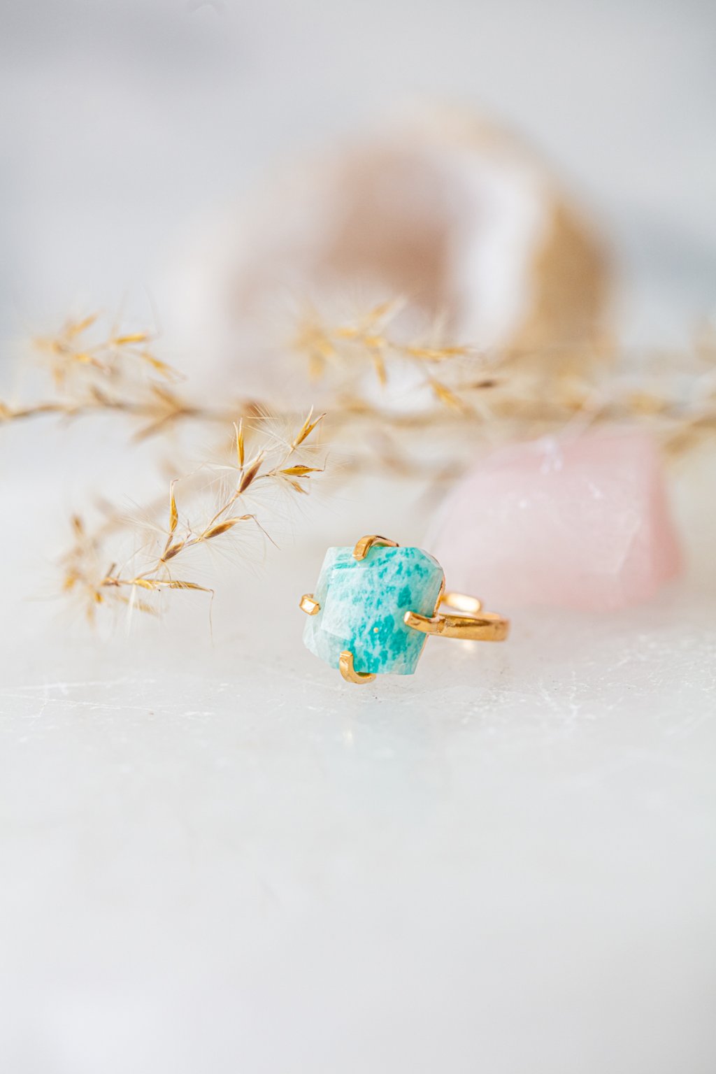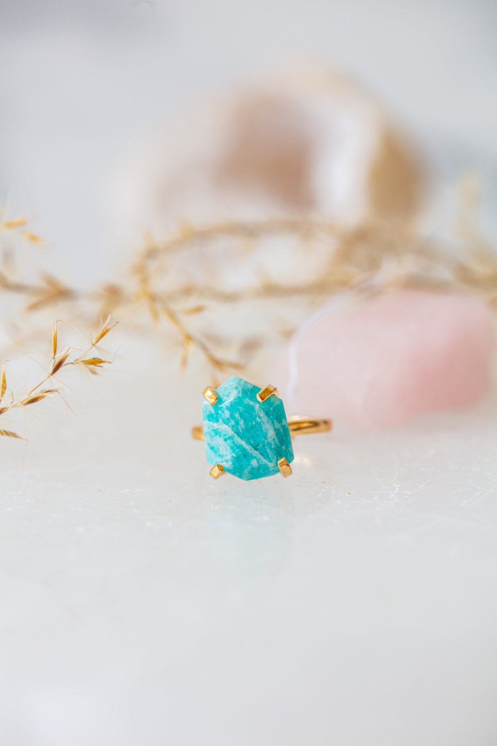 Jemný fazetovaný prsten s amazonitem - pozlacený