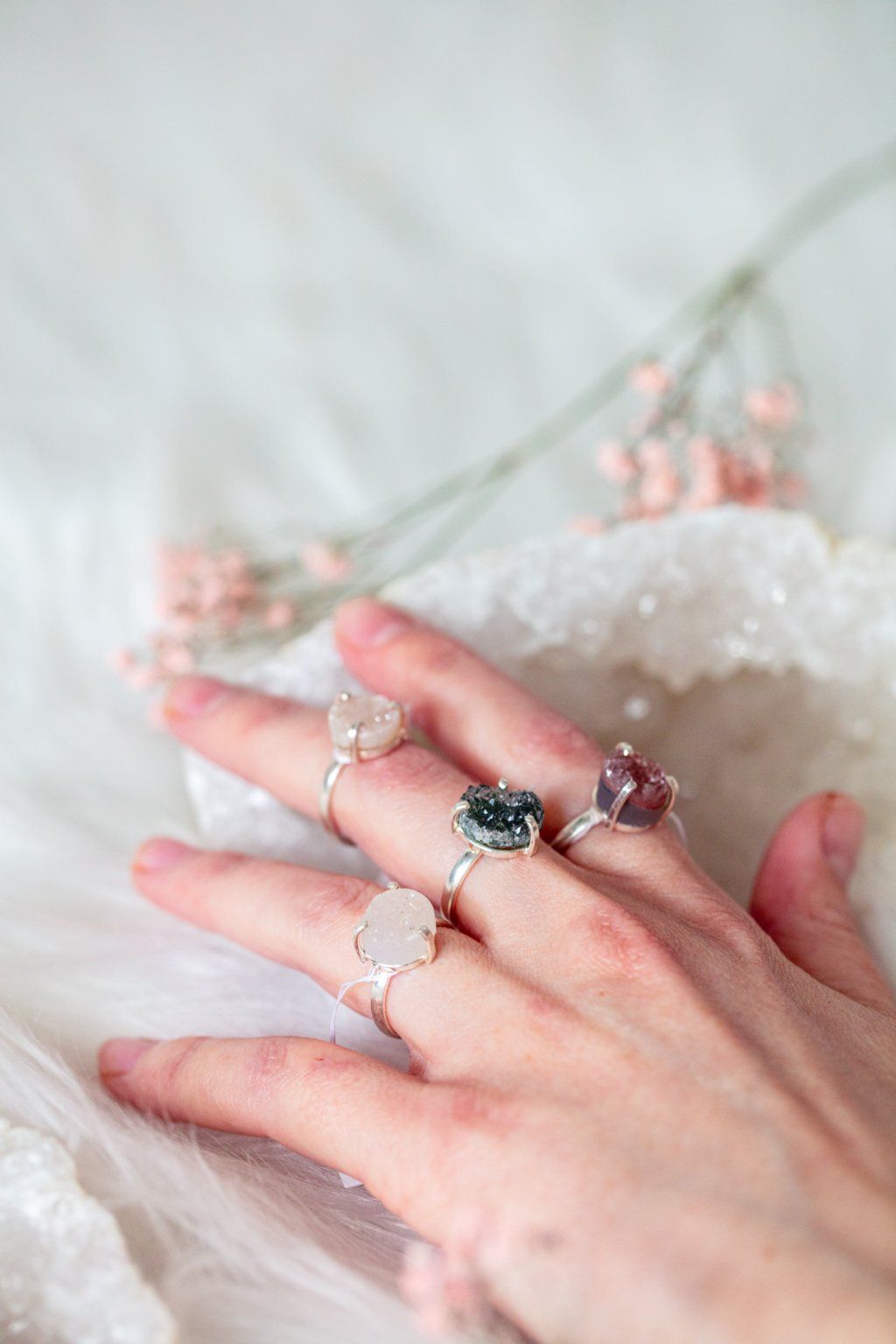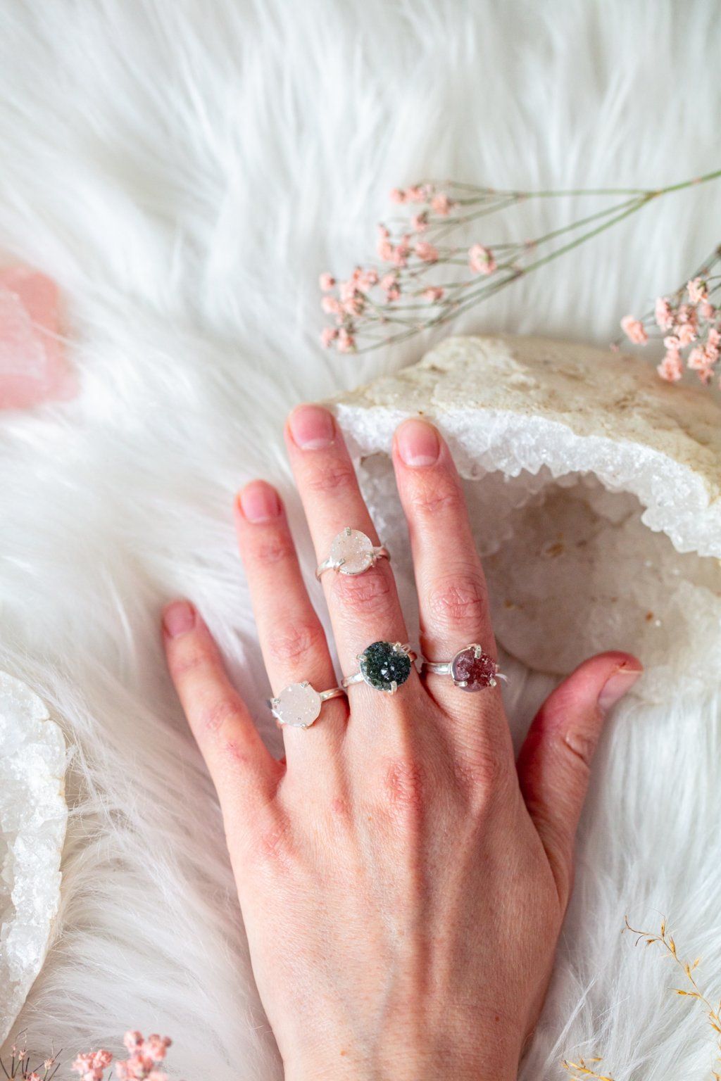 Prsten s drúzou křemene je každý jiný, vyberte si ten pravý pro vás! Drúza je úžasné seskupení srostlých krystalů na společném podkladu. Tyto trsy v sobě shromažďují ohromnou energii, odsávají negativní energii a proměňují ji v pozitivní. Drúzy jsou energeticky velmi silné a hodí se na ochranu větších prostor - nemusíte se je nosit bát do větší společnosti, na konference apod. Pomohou vám potlačit pocity trémy neboť vyzařují energii do okolního prostředí.