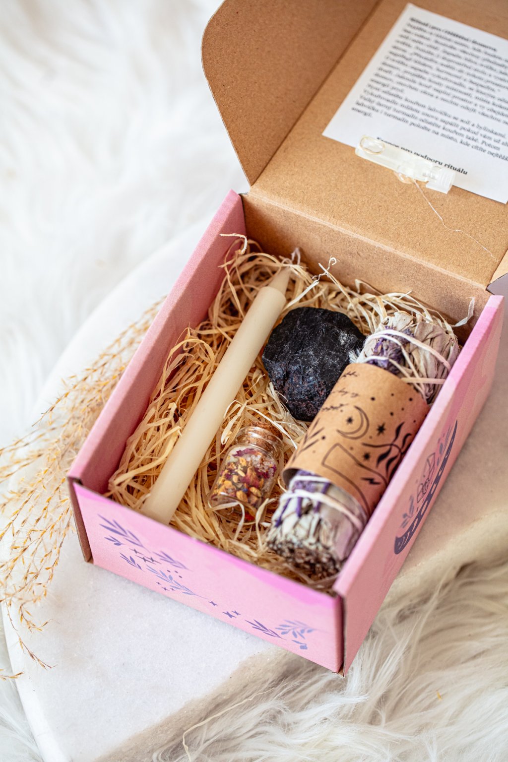 Rituální souprava, která vám otevře dveře do světa rituálů. Konkrétně sestavená souprava určená pro daný záměr vám zjednoduší přípravu rituálu. V kompletní soupravě naleznete i podrobný popis k provedení rituálu. Vše uloženo v překrásné krabičce.