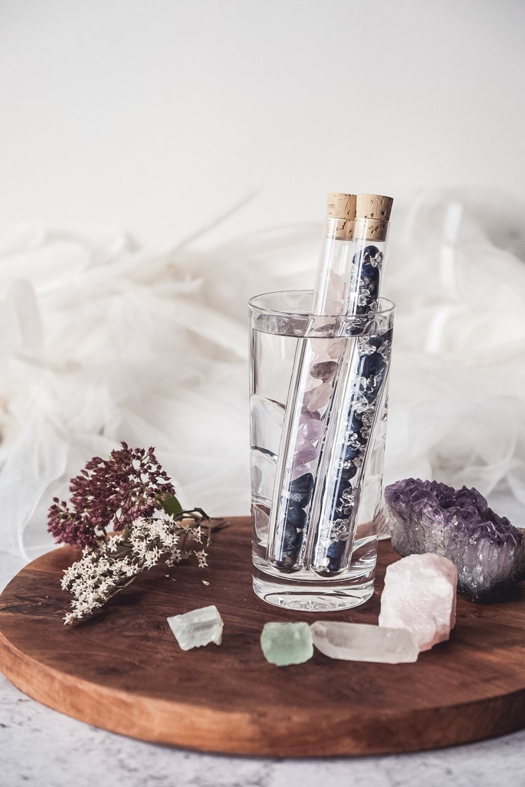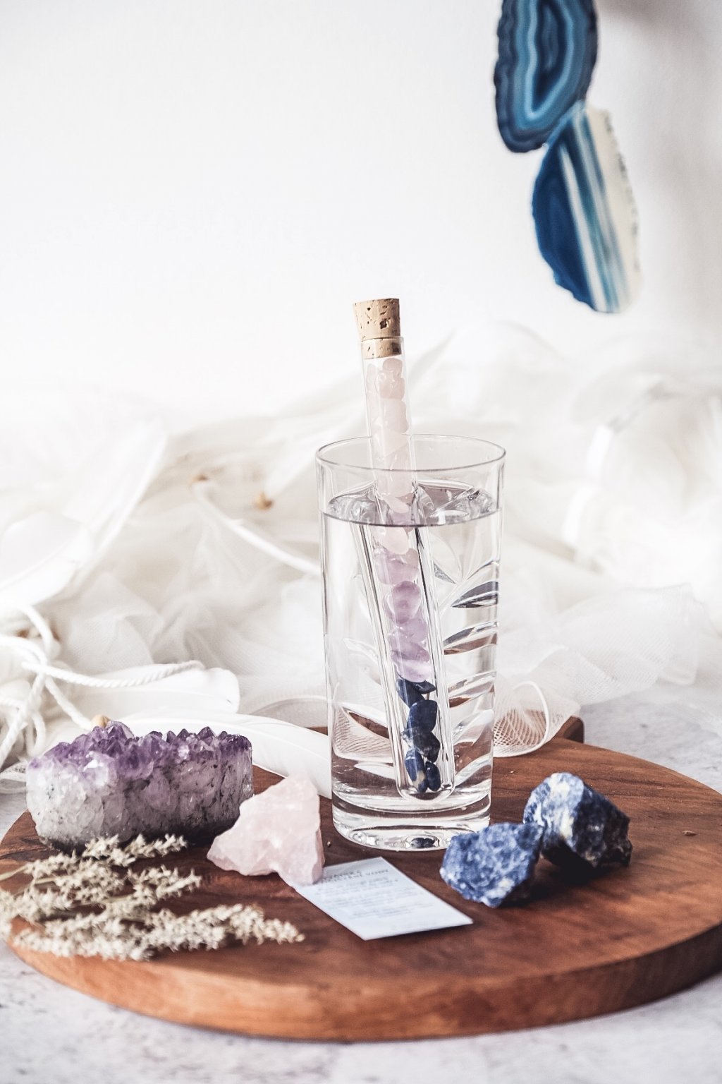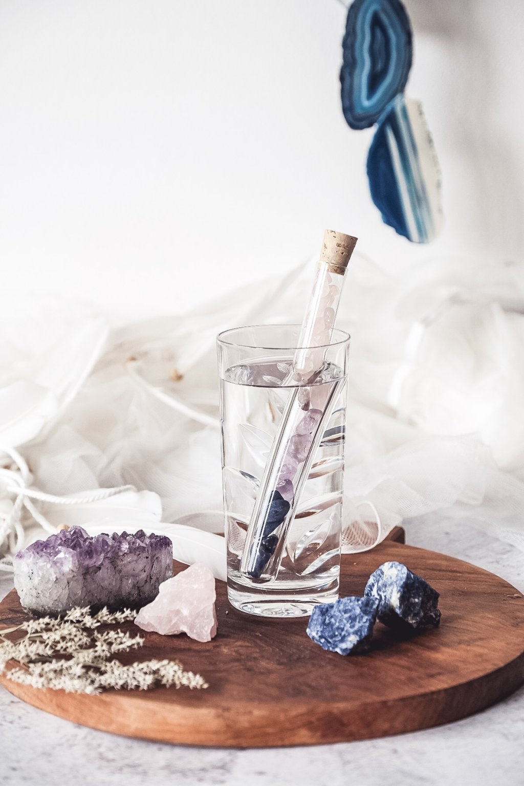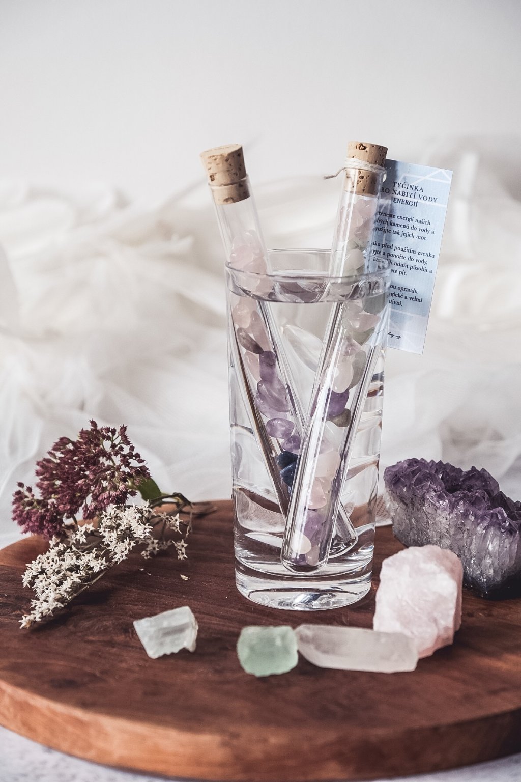 Vložte drahokamovou tyčinku do sklenice nebo karafy s pitnou vodou. Po 7 minutách se do vody začne uvolňovat energie minerálů.