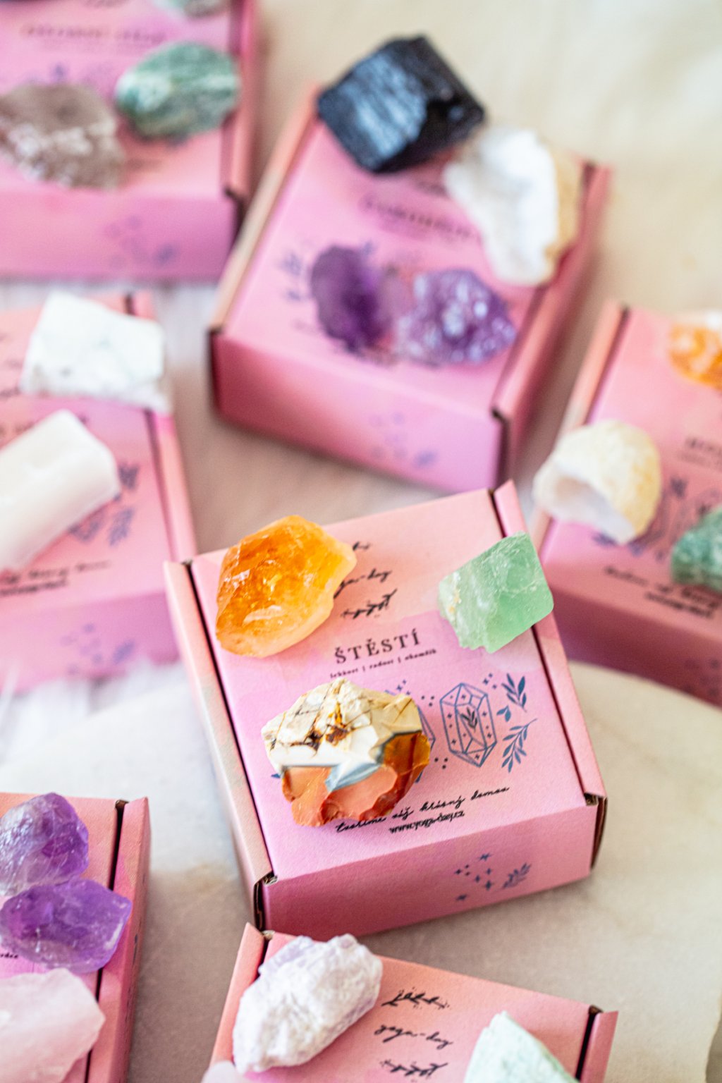 Uložené jsou v nádherné dárkové yoga-day krabičce, aby bezpečně doputovaly až k vám. Uvnitř krabičky je popis energie krystalů a jejich role.