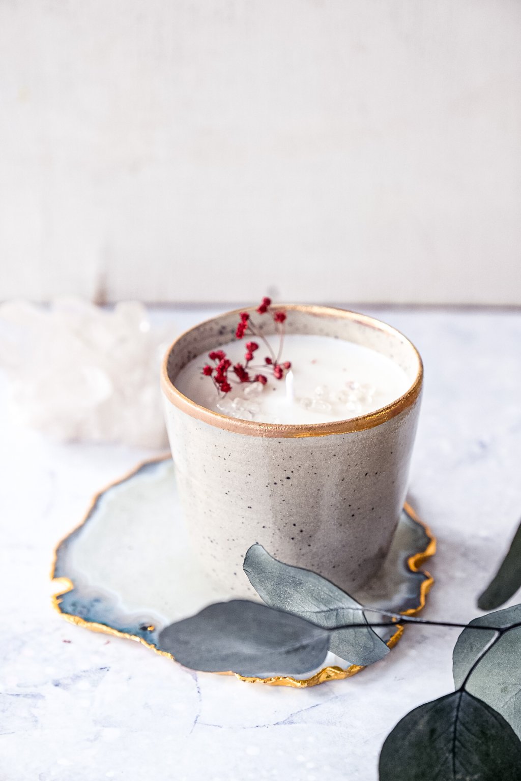 Svíčka je navíc ozdobena jemným drobným křišťálem. Křišťál dokáže pracovat i s energií tak, že ji dokáže dostat do nejdokonalejšího možného stavu a odstranit vzniklou nerovnováhu hodí se také pro meditační účely. Naladí Vás k duchovnímu účelu a dokáže odfiltrovat všechny negativní vlivy.