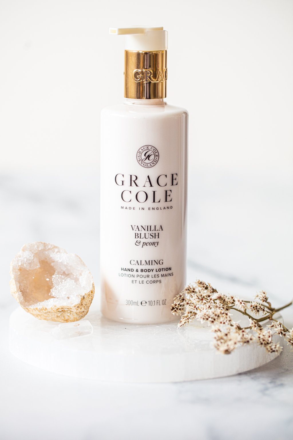 Mléko na ruce a tělo Grace Cole Vanilla Blush & Peony spojuje smyslnou vůni s intenzivní péčí. Veganská receptura bez parabenů obsahuje marulový olej, bambucké máslo a vitamin E, které vyživují, hydratují a chrání pokožku. Pivoňka a leknín působí jako přírodní antioxidanty, které navrací pleti jas a vitalitu. Značka Grace Cole, vyráběná v Anglii, propojuje elegantní design, jemné složky a dlouhotrvající vůně, díky čemuž se z běžného mazání stává malý každodenní rituál.