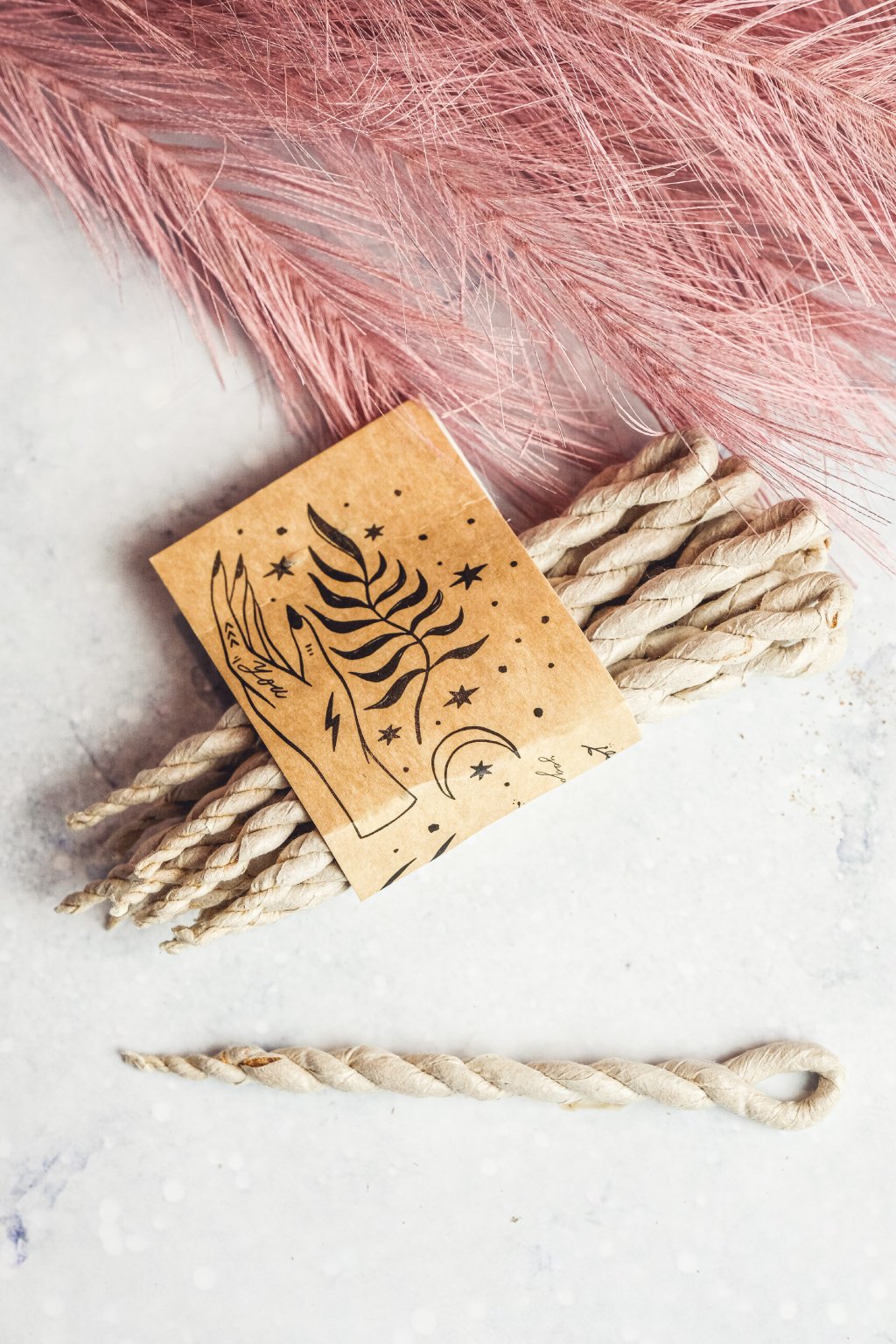 Provázek držte za uzlík a druhý konec podpalte. Jakmile začne hořet sfoukněte plamínek. Provázek položte buď do misky nebo talířku s pískem. Můžete také použít mušli abalone.